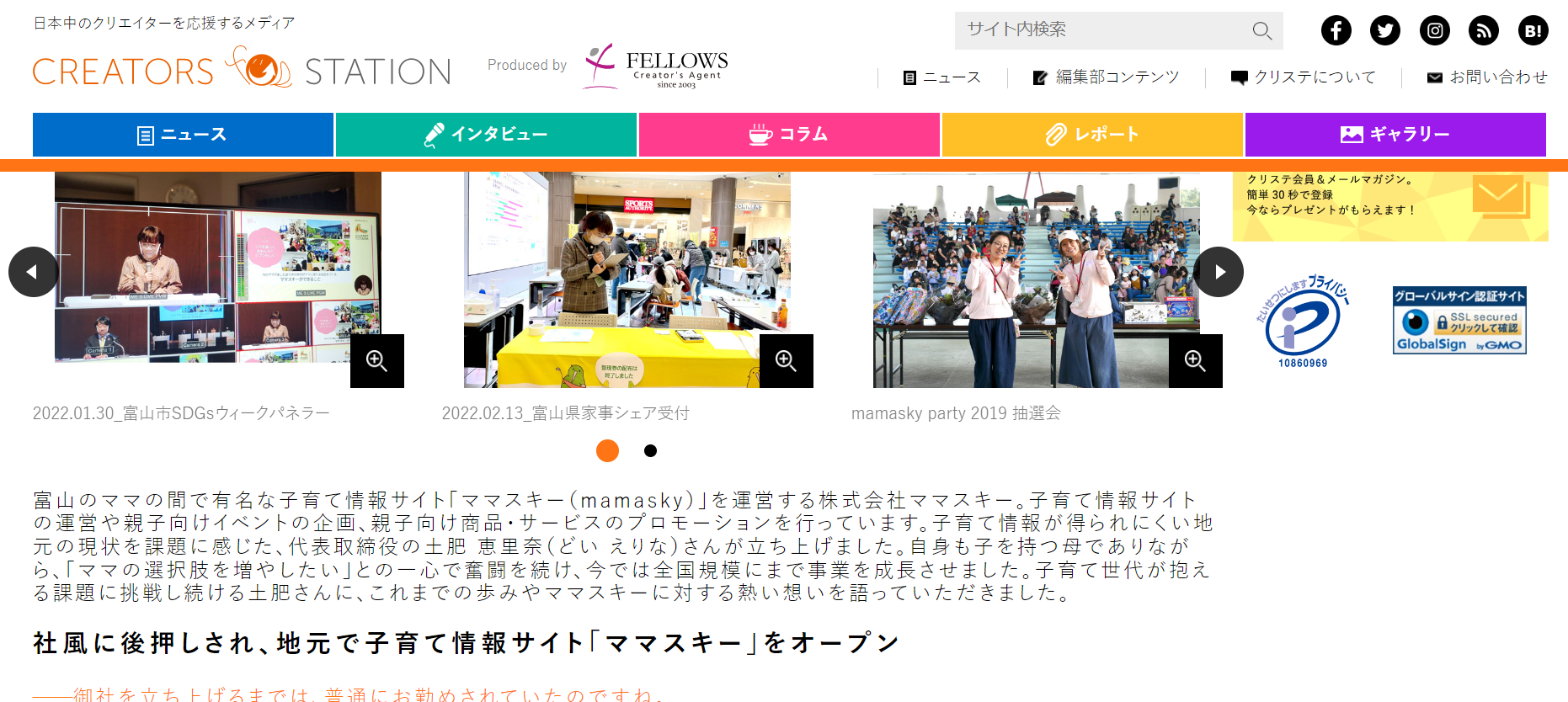 日本中のクリエイターを応援するメディア「クリエイターズステーション」に株式会社ママスキーが掲載されました。